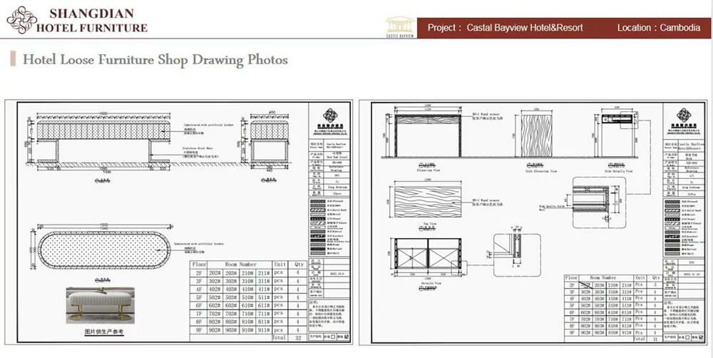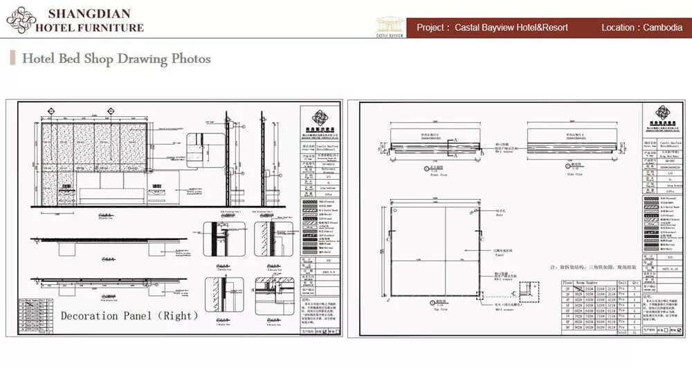 As the above photos show, all the hotel furniture needs to draw a shop drawing, and once the drawing is confirmed(signature) by the customer, the manufacturing process will continue. If you need to know about this hotel project, please send your inquiry to us.