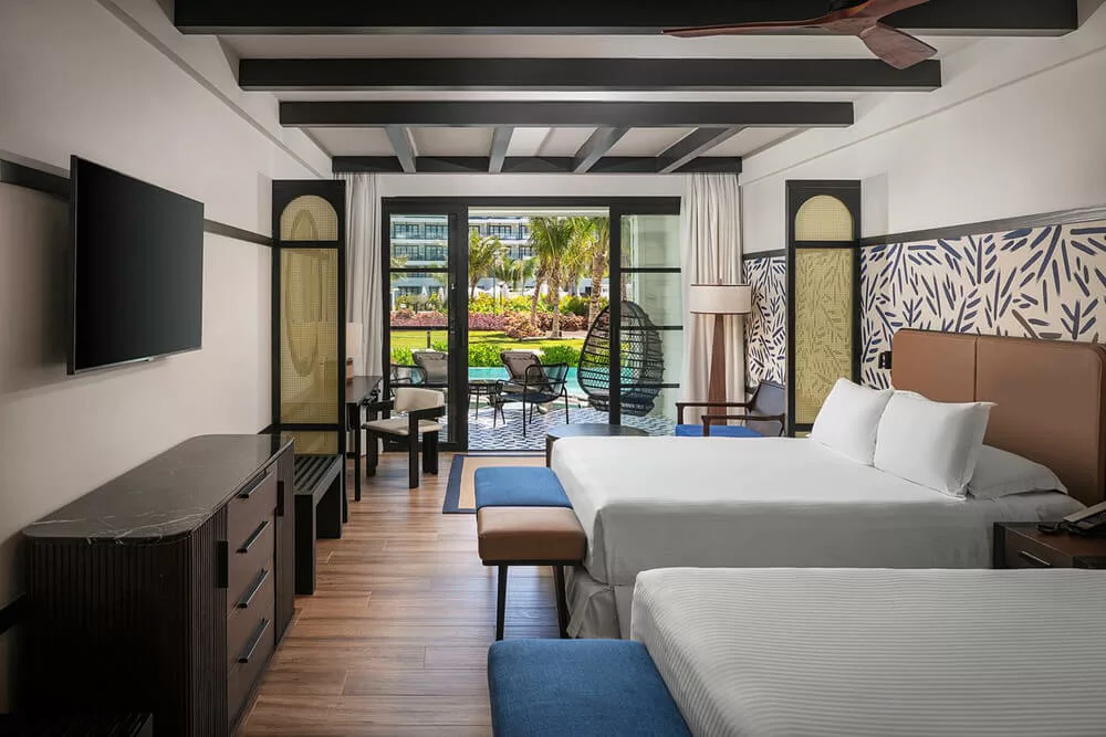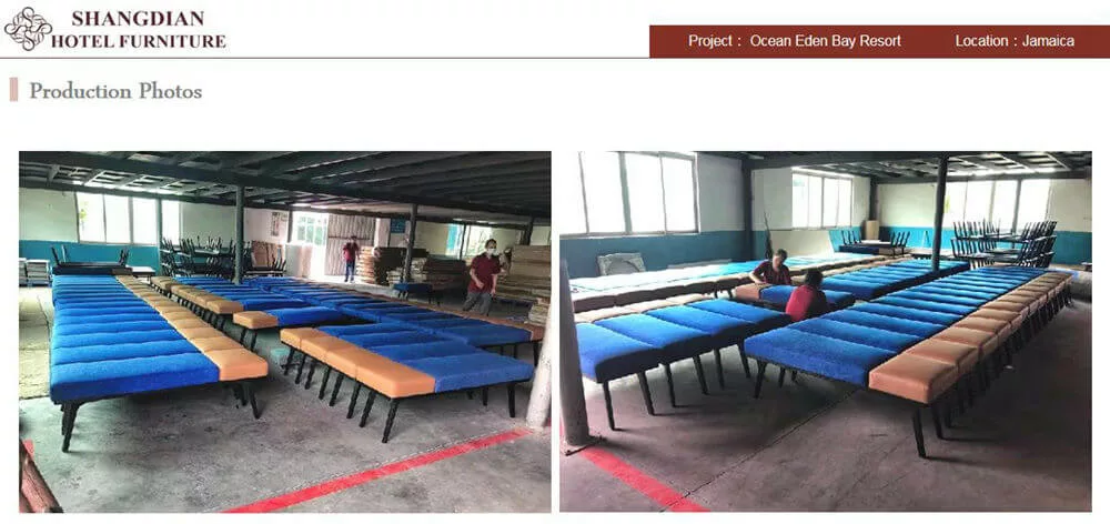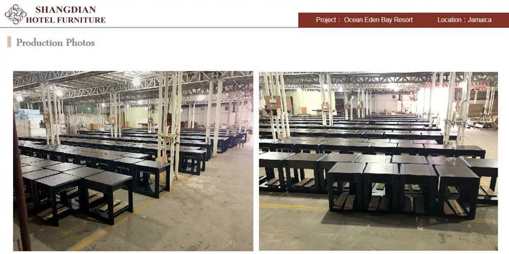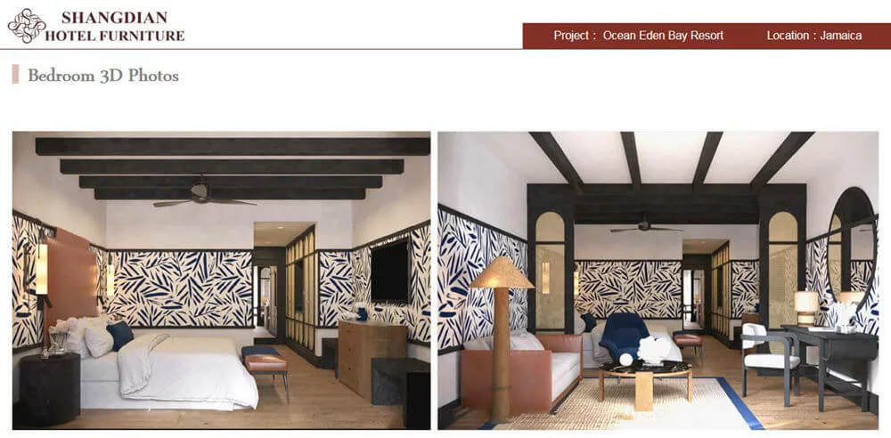Shangdian provides all the hotel bedroom furniture to the Ocean Eden Bay Hotel, which has 360 rooms, including king room, double room, twin room and family room, each room furniture design was resort style, because this hotel was near the Caribbean sea.
