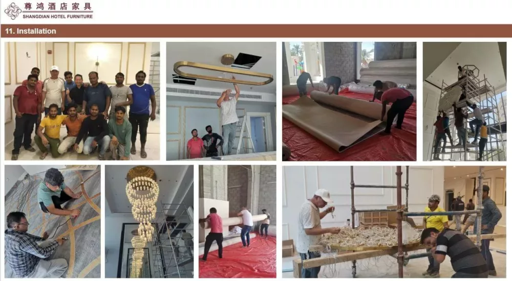 The furniture installation is the most crucial step. As depicted in the photos above, Shangdian arranges for our factory’s skilled technicians to be on-site to handle the furniture installation.